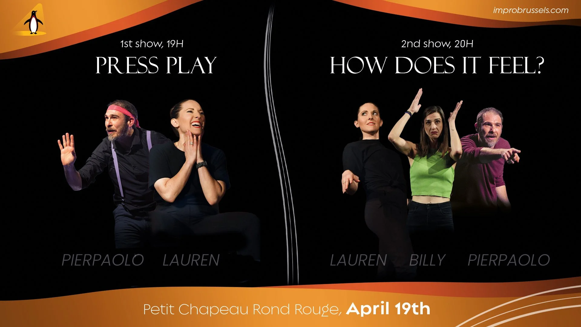 Get ready for an experimental double bill featuring Lauren Berning, Billy Kissa and Pierpaolo Buzza… never have they been on stage together, on April 19th you can witness Improv history being made!
